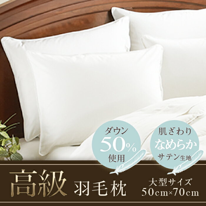 【ふるさと納税】ダウン50%使用ふっくらまくら 高級ダウンピロー 羽毛枕 なめらかサテン生地【大型サイズ】(50cm×70cm) 国産 日本製 送料無料 布団 肌掛け 本掛け 布団カバー コロナ